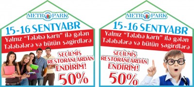 YALNIZ "Tələbə kartı" ilə gələn Tələbələrə və bütün şagirdlərə.